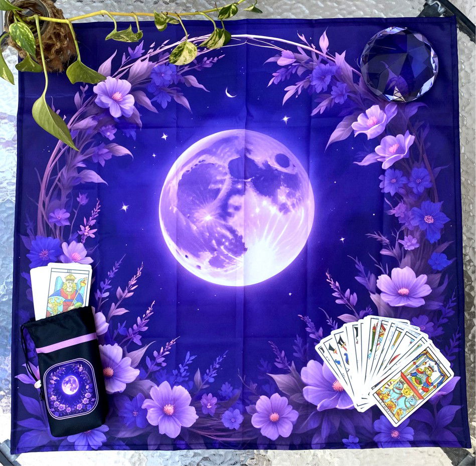Tiene unas medidas de 70 x 70 cm, lo que lo hace ideal para desplegar tus cartas y realizar lecturas cómodamente aunque también lo podes utilizar para runas, dados, constelaciones, o incluso como mantel o tapiz decorativo.